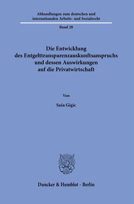 English summary: The Development of the Right to Pay Transparency Information and its Impact on the Private Sector The thesis examines in detail which changes the German legislator must make to the existing EntgTranspG when implementing the European Pay Transparency Directive, which came into force on June 6, 2023, and which legal problems arise in practice with regard to the individual right to information. In particular, the work deals with the important question of the indicative effect of the information. German description: Der individuelle Entgelttransparenzauskunftsanspruch soll eine Uberprufung der Einhaltung des Entgeltgleichheitsgebots ermoglichen. Seine Entwicklung, seine Auswirkungen auf die Privatwirtschaft und die mit ihm einhergehenden Probleme sind Gegenstand der Arbeit.Nach einem Blick in die Vergangenheit erfolgt eine systematische Darstellung des Auskunftsanspruchs. Anschliessend wird in der Arbeit ausfuhrlich untersucht, welche Anderungen der deutsche Gesetzgeber am bestehenden EntgTranspG bei der Umsetzung der Richtlinienvorgaben der am 6. Juni 2023 in Kraft getretenen Entgelttransparenzrichtlinie vornehmen muss und welche rechtlichen Probleme sich dabei in Bezug auf den Auskunftsanspruch fur die Praxis ergeben. Hierbei werden sowohl verfassungsrechtliche als auch datenschutzrechtliche Aspekte analysiert. Insbesondere setzt sich die Arbeit mit der wichtigen Frage der Indizwirkung des Auskunftsinhalts auseinander.