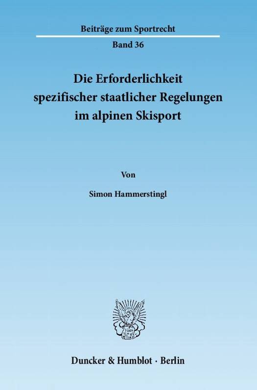 Die Untersuchung beschäftigt sich mit der Frage der Erforderlichkeit spezifischer staatlicher Regelungen im alpinen Skisport als einer mit einer Vielzahl von Gefahren und Risiken behafteten Form der Freizeitgestaltung. Schwerpunktmäßig behandelt die Arbeit, in der auch die Regelungsformen in anderen Ländern aufgezeigt werden, die deutsche bzw. bayerische Rechtslage. Es erfolgt eine eingehende Auseinandersetzung mit der staatlichen Skisportvorschrift des Art. 24 LStVG sowie den diversen nichtstaatlichen skisportspezifischen Regelungen. Diskutiert werden das Nebeneinander und die Wechselwirkung von staatlichen und nichtstaatlichen Regelungen, wobei insbesondere auf die Bedeutung der vom internationalen Skiverband aufgestellten FIS-Regeln eingegangen wird. Neben generellen Überlegungen zu staatlichen Normgebungspflichten und -spielräumen wird vor allem die umstrittene Frage erörtert, inwieweit es trotz oder gerade wegen der bestehenden rechtlichen Situation spezifische staatliche Regelungen für den alpinen Skisport geben sollte und wie diese gegebenenfalls aussehen könnten.