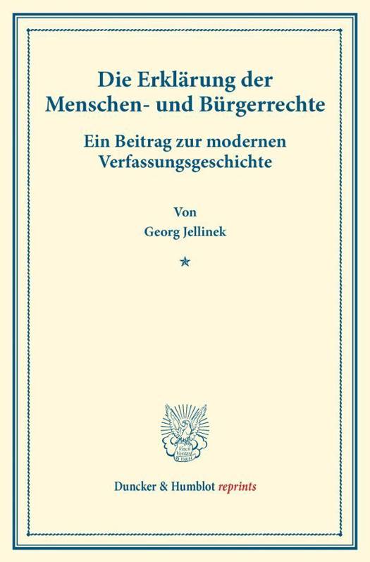Im vorliegenden Werk beleuchtet Georg Jellinek die Geschichte der Menschenrechte. Er stellt u.a. fest, dass das Vorbild der französischen Erklärung der Menschen- und Bürgerrechterechte nicht Rousseaus contrat social, sondern die bill of rights der Einzelstaaten der nordamerikanischen Union von 1776 war. Das Buch erfuhr nach seiner Veröffentlichung große Aufmerksamkeit und wurde in mehrere Sprachen übersetzt. Insbesondere Jellineks These, die Erklärungen der Menschen- und Bürgerrechte gingen geschichtlich zurück auf die Kämpfe um die Religionsfreiheit, wurde kontrovers diskutiert.