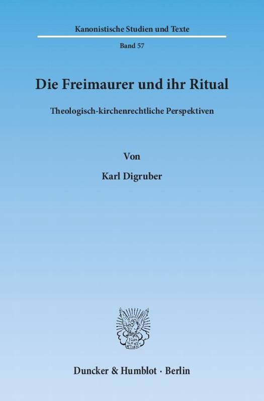 Karl Digruber befasst sich, ausgehend von einer personal-theologischen Sichtweise, mit den Ritualen der Johannis-Freimaurerei, die in einen christlichen Kontext gestellt und von diesem her beleuchtet und beurteilt werden. Die Fokussierung auf die Rituale der Freimaurer erfolgt deshalb, weil das Menschenbild der Freimaurerei wesentlich von dieser Arbeit an sich selbst mit Symbolen in diesem rituellen Geschehen bestimmt wird. Im Zuge des Buches wird natürlich auch der Genese der Freimaurerei ausführlich Raum gegeben. Damit werden freimaurerische Grundlagen, wesentliche Aspekte der freimaurerischen Ritualistik und eine Zusammenschau mit kirchlichen Ritualen zu einem Ganzen verwoben, das die Möglichkeit bietet, eine theologische Beurteilung zu geben. Nach diesem perspektivischen Status quo wird in einem zweiten Schritt eine historische Darstellung und Rechtsquellenforschung betrieben. Das führt dazu, dass die komplexen Fragestellungen des Kirchenrechts im Hinblick auf die Freimaurerei entwirrt und die aktuelle kirchenrechtliche Beurteilung der Freimaurerei ausgeleuchtet werden kann.