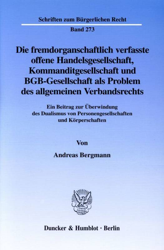 146 Abs. 1 S. 1, 492 Abs. 1 HGB positive Anerkennung gefunden hat. Materielle Rechtsprinzipien stehen der formal-organisatorischen Institutionalisierung der abstrakten Organverwaltung in diesen Verbänden nicht entgegen.Ausgezeichnet mit dem Dr. Friedrich-Feldbausch-Preis des Jahres 2001/2002 der Rechts- und Wirtschaftswissenschaftlichen Fakultät der Universität des Saarlandes.