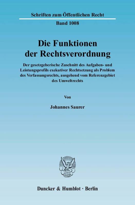 Der Gesetzgeberische Zuschnitt Des Aufgaben- Und Leistungsprofils Exekutiver Rechtsetzung ALS Problem Des Verfassungsrechts, Ausgehend Vom Referenzgebiet Des Umweltrechts