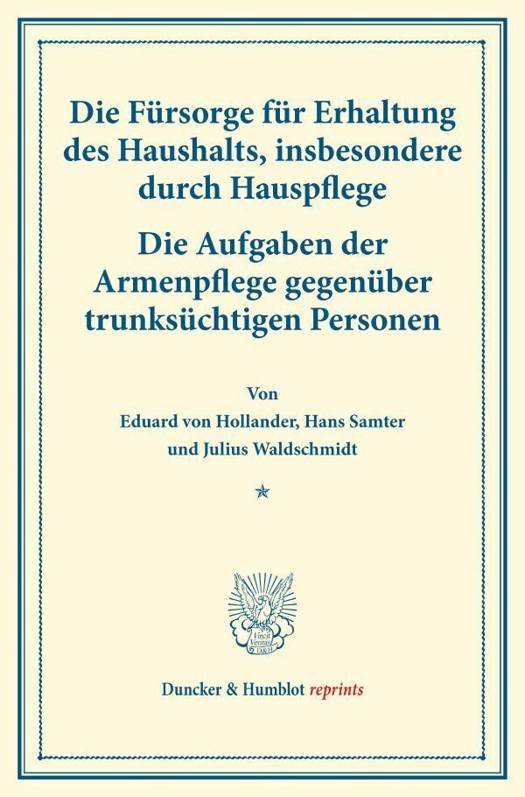Die Aufgaben Der Armenpflege Gegenuber Trunksuchtigen Personen. Von Hans Samter / Julius Waldschmidt. (Schriften Des Deutschen Vereins Fur Armenpflege Und Wohlthatigkeit 55)