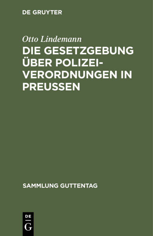 Die Gesetzgebung Über Polizeiverordnungen in Preußen