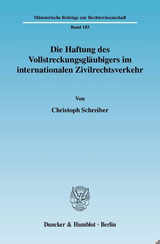 Im Ergebnis entwickelt der Autor ein umfassendes, in sich geschlossenes System der Gläubigerhaftung im IPR und IZVR. Christoph Schreiber legt hiermit die erste Monographie zu diesem Problemkreis vor.