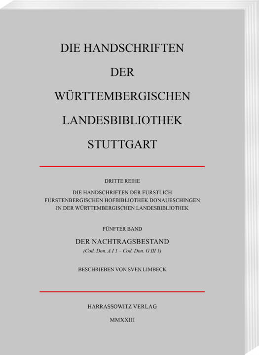 Im Jahr 1993 wurde die bedeutende Handschriftensammlung der Furstlich Furstenbergischen Hofbibliothek Donaueschingen durch das Land Baden-Wurttemberg erworben. Heute befindet sich der Bestand in den beiden Landesbibliotheken Karlsruhe und Stuttgart. Der Katalog von Sven Limbeck bietet erstmalig wissenschaftliche Beschreibungen der in Stuttgart aufbewahrten 259 Handschriften des 8. bis 19. Jahrhunderts aus dem sogenannten Donaueschinger "Nachtragsbestand". Es handelt sich dabei um die Handschriften, die nach Erscheinen des Katalogs von Karl August Barack, also nach 1865, fur Donaueschingen erworben worden waren. Der beschriebene Bestand setzt sich aus 175 neuzeitlichen und 84 mittelalterlichen Handschriften zusammen, die uberwiegend in deutscher oder lateinischer Sprache verfasst sind. Es finden sich darunter aber auch Werke in englischer, franzosischer, italienischer, niederlandischer, griechischer und hebraischer Sprache. Auch wenn sich inhaltlich kein einheitliches Bild zeichnen lasst, so bildet die Sammlung doch ein insbesondere landesgeschichtlich relevantes Ensemble: Beispiele geistlicher Spiele und Lieder gehoren ebenso dazu wie Gebets- und Andachtsbucher. Quellensammlungen und Darstellungen zur Geschichte von Furstenberg, Wurttemberg und weiteren Regionen stehen neben naturkundlichen Werken. Kulturhistorisch herausragende Stucke sind etwa der illuminierte Zimmernsche Totentanz oder eine dreibandige Lautentabulatur.