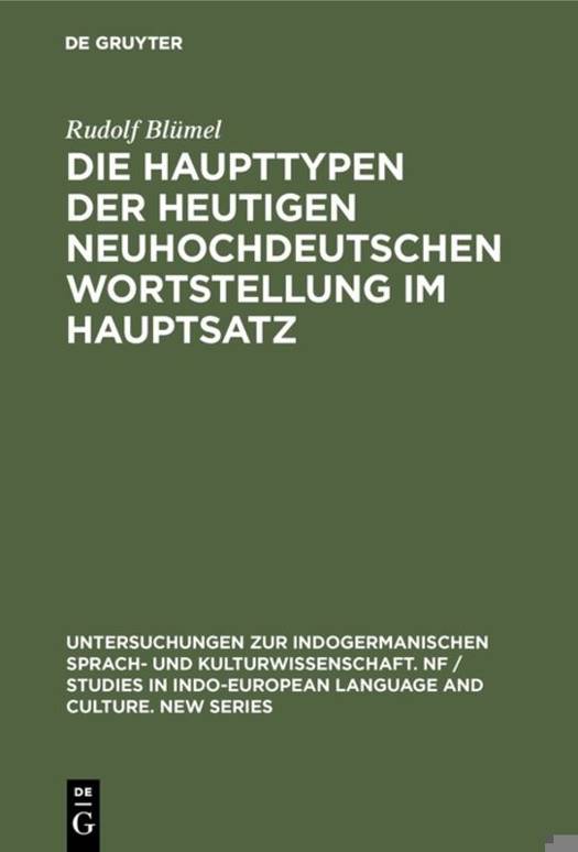 Die Haupttypen Der Heutigen Neuhochdeutschen Wortstellung Im Hauptsatz