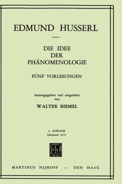 Gedankengang Der Vorlesungen.- I. Vorlesung.- Natürliche Denkhaltung und Wissenschaft1).- Philosophische (reflexive) Denkhaltung.- Die Widersprüche der Erkenntnisreflexion in natürlicher Einstellung.- Die doppelte Aufgabe der wahren Erkenntniskritik.- Die wahre Erkenntniskritik als Phänomenologie der Erkenntnis.- Die neue Dimension der Philosophie; ihre eigene Methode gegenüber der Wissenschaft.- II. Vorlesung.- Der Anfang der Erkenntniskritik: das In-Frage-stellen jeglichen Wissens.- Gewinnung des absolut gewissen Bodens im Anschlu? an Descartes' Zweifelsbetrachtung.- Die Sphäre der absoluten Gegebenheiten.- Wiederholung und Ergänzung; Widerlegung des Argumentes gegen die Möglichkeit einer Erkenntniskritik.- Das Rätsel der natürlichen Erkenntnis: die Transzendenz.- Scheidung zweier Begriffe von Immanenz und Transzendenz.- Das erste Problem der Erkenntniskritik: die Möglichkeit transzendenter Erkenntnis.- Das Prinzip der erkenntnistheoretischen Reduktion.- III. Vorlesung.- Das Vollziehen der erkenntnistheoretischen Reduktion: Ausschaltung alles Transzendenten.- Thema der Forschung: die reinen Phänomene.- Die Frage der "objektiven Giltigkeit" der absoluten Phanomene.- Unmöglichkeit der Beschrankung auf singuläre Gegebenheiten; die phanomenologische Erkenntnis als Wesens-erkenntnis.- Die zwei Bedeutungen des Begriffes "Apriori".- IV. Vorlesung.- Erweiterung der Forschungssphare durch die Intentionalität.- Die Selbstgegebenheit des Allgemeinen; die philosophische Methode der Wesensanalyse.- Kritik der Gefühlstheorie der Evidenz; Evidenz als Selbstgegebenheit.- Keine Beschränkung auf die Sphare der reellen Immanenz; Thema alle Selbstgegebenheit.- V. Vorlesung.- Die Konstitution des Zeitbewußtseins.- Wesenserfassung als evidente Gegebenheit der Essenz; Konstitution der singulären Essenz und des Allgemein-heitsbewußtseins.- Die kategorialen Gegebenheiten.- Das symbolisch Gedachte als solches.- Das Forschungsgebiet in seinem weitesten Umfang: die Konstitution der verschiedenen Modi der Gegenständlichkeit in der Erkenntnis; das Problem der Korrelation von Erkenntnis und Erkenntnisgegenstandlichkeit.- Beilagen: .- Beilage I.- Beilage ll.- Beilage III.- Textkritischer Anhang: .- Zur Textgestaltung.- Textkritische Anmerkungen.- Nachweisder Originalseiten.- Namenregister.
