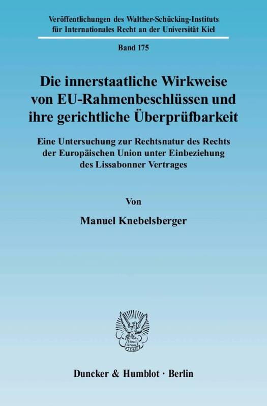Hintergrund der Untersuchung ist das Pupino-Urteil des EuGH, mit welchem der EuGH das bekannte Prinzip richtlinienkonformer Auslegung auf EU-Rahmenbeschlüsse übertragen hat. Vom Pupino-Urteil ausgehend untersucht Manuel Knebelsberger, inwieweit die vom EuGH diesbezüglich vorgenommene faktische Gleichstellung des Unionsrechts mit dem Gemeinschaftsrecht gerechtfertigt ist. Hierbei geht der Autor von der These aus, daß sich eine Pflicht zur rahmenbeschlußkonformen Auslegung allein aus der besonderen Rechtsnatur des Unionsrechts ergeben kann. Nach eingehender Würdigung des einschlägigen Primärrechts, und insbesondere der dortigen Kompetenzen des EuGH, gelangt Knebelsberger - im Einklang mit der herrschenden Ansicht - zu dem Ergebnis, daß das Unionsrecht zwischen dem Gemeinschafts- und dem Völkerrecht anzusiedeln ist. Angesichts des Fehlens hinreichender kommunitärer Elemente im Unionsrecht lehnt er eine Pflicht zur rahmenbeschlußkonformen Auslegung ab.