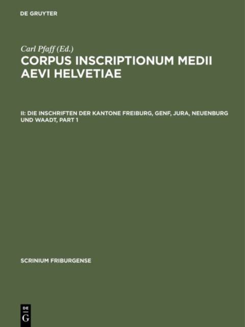 Die Inschriften Der Kantone Freiburg, Genf, Jura, Neuenburg Und Waadt