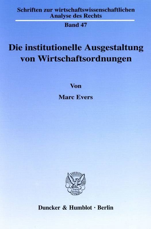 Die Herausforderungen der Globalisierung machen eine Anpassung politischer und rechtlicher Institutionen an neue gesellschaftliche und ökonomische Gegebenheiten notwendig. Eine ordnungspolitische Fundierung der wirtschaftspolitischen Diskussion ist dringend geboten. Mit seiner Arbeit leistet Marc Evers einen Beitrag zu einer modernen Argumentationsgrundlage für ordnungspolitische Gestaltungsvorschläge. Ziel ist es, Ansätze der heutigen Neuen Institutionenökonomik und des "traditionellen" Ordoliberalismus deutscher Prägung anhand konkreter Problemstellungen zu verbinden.