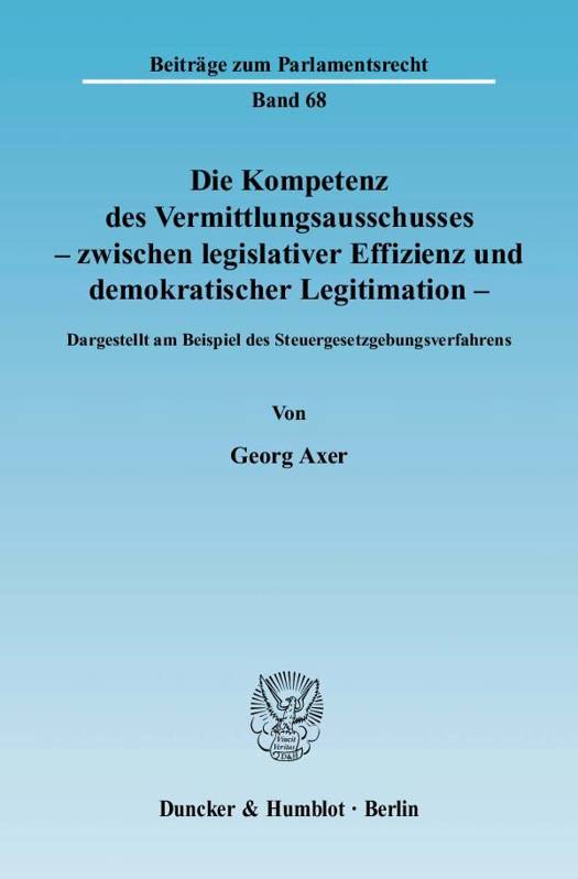 Er beleuchtet die Legitimation des Vermittlungsausschusses als Verfassungsorgan und untersucht die Anforderungen an seine Zusammensetzung und sein Verfahren. Aus der systematischen Stellung des Vermittlungsausschusses im Gesetzgebungsverfahren entwickelt er die Grenzen der Vermittlungskompetenz, welche er anhand des geltenden Geschäftsordnungsrechts konkretisiert. Weiter fragt er nach der Folge einer Überschreitung der Vermittlungskompetenz und leistet dabei einen grundsätzlichen Beitrag zu einer Fehlerfolgenlehre für das formelle Gesetz. Abschließend unterzieht er den gewonnenen Maßstab einer Bewährungsprobe. Anhand von vier Beispielen der praktisch besonders betroffenen Steuergesetzgebung zeigt er die denkbaren Konstellationen der (Nicht-)Fehlerhaftigkeit eines Einigungsvorschlags auf.