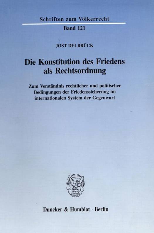 Jost Delbrück hat in einer Vielzahl von Aufsätzen auf diesen zivilisatorischen Aspekt der Völkerrechtsentwicklung hingewiesen. Die Wertgebundenheit des Völkerrechts ebenso wie seine Offenheit angesichts des weltpolitischen Pluralismus zu wahren, ist der Kern seines Verständnisses der »internationalen Friedensordnung als rechtliche und politische Gestaltungsaufgabe«. Die hier vorgelegte Auswahl von Aufsätzen Jost Delbrücks, die seine Schüler anläßlich seines 60. Geburtstages zusammengestellt haben, hat mit dem genannten Focus auch in einem nach Neuordnung suchenden internationalen System nichts an Aktualität und Orientierungskraft eingebüßt.