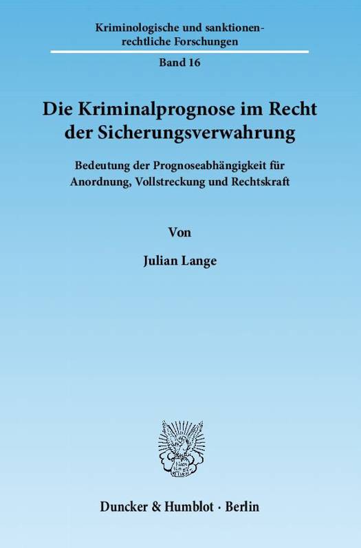Die Sicherungsverwahrung steht im Zentrum kriminalpolitischer Aufmerksamkeit. Zentrales Bedenken ist die Unsicherheit der Kriminalprognose. Julian Lange untersucht unter welchen Voraussetzungen die Kriminalprognose gegen den Täter gelten kann und im zweiten Schritt, welche Anforderungen an eine die den Freiheitsentzug begründende Kriminalprognose zu stellen sind. Der Autor untersucht Anordnungs- sowie Vollstreckungsentscheidungen ebenso wie die Frage nach dem Umfang der Rechtskraft der Anordnung von Sicherungsverwahrung.