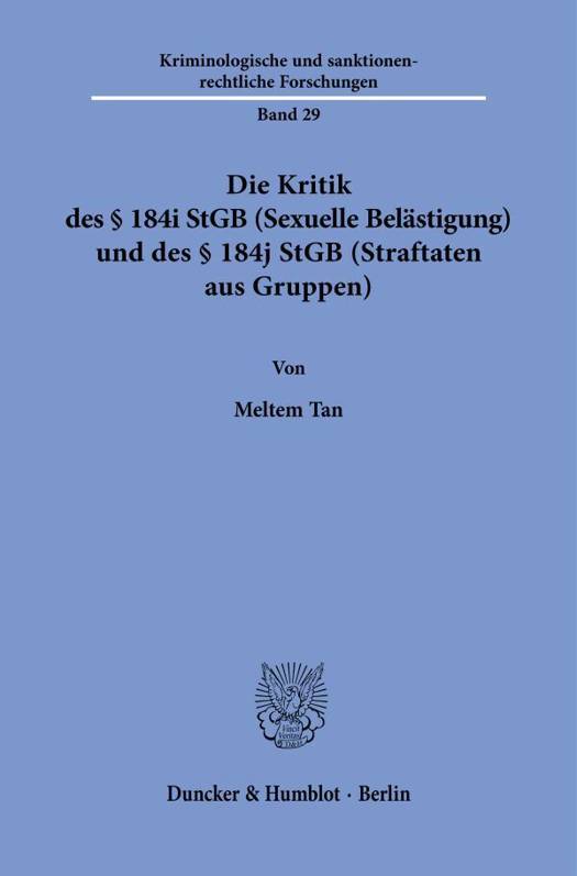 English summary: The Criticism of 184i StGB (Sexual Harassment) and 184j StGB (Group Offenses) Since the implementation of the criminal norms 184i StGB (sexual harassment) and 184j StGB (criminal offenses from groups), there has been a critical discussion in legal literature as to whether these offenses exceed the threshold of criminal conduct. This doctoral thesis takes an in-depth look at the legitimacy of these norms, and at the same time criticizes the relevant aspects to conclude with a concrete legislative proposal. German description: Die Strafnormen der sexuellen Belastigung ( 184i StGB) und der Straftaten aus Gruppen ( 184j StGB) stehen im Spannungsfeld juristischer Kontroversen und verdienen eine tiefgehende Auseinandersetzung. Wahrend die Regelung zur sexuellen Belastigung aufgrund ihrer Alltagsrelevanz und des Schutzes vor diesem Verhalten von zentraler Bedeutung ist, wirft 184j StGB erhebliche verfassungsrechtliche Fragen auf. In ihrer Arbeit beleuchtet die Autorin die Daseinsberechtigung dieser Normen und befasst sich mit der Legitimation des geschutzten Rechtsguts der sexuellen Selbstbestimmung. Durch eine intensive Analyse der Tatbestandsmerkmale werden die bestehenden Herausforderungen und Schwachstellen aufgezeigt. Daruber hinaus setzt sich die Autorin mit der Erweiterung des Schutzbereichs auseinander, um auch verbale und digitale Formen sexueller Belastigung zu erfassen. Abgerundet wird die Untersuchung durch einen rechtsvergleichenden Ansatz, der in einen Gesetzesvorschlag mundet.