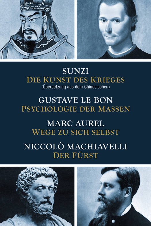 Die hier versammelten Werke von Sunzi, Niccolò Machiavelli, Gustave Le Bon und Marc Aurel gelten auch heute noch als Leitfäden für Personalführung, Strategie und Menschenkenntnis.Sunzi: Die Kunst des Krieges: Vor mehr als 2.500 Jahren verfasst, erfreut sich dieses kleine Handbuch der Kriegführung nach wie vor großerBeliebtheit.Niccolò Machiavelli: Der Fürst: In seiner Radikalität, in seiner scharfen Trennung zwischen rein politischem Handeln und den Entscheidungen des Einzelnen überstrahlt Machiavellis Werk die politiktheoretischen Schriften aller seiner Zeitgenossen.Gustave Le Bon: Psychologie der Massen: Dieses Grundlagenwerk der Sozialpsychologie beeinflusstenicht nur Sigmund Freud, sondern wurde auch von Politikern und Diktatoren des 20. Jahrhunderts für die Ausarbeitung ihrer Propagandatechniken benutzt.Marc Aurel: Wege zu sich selbst: Von zeitlos klassischem Rang ist die Besinnung auf das richtige Handeln und das gute Leben, die der römische Kaiser in seinen nahezu zweitausend Jahre alten Aufzeichnungen,den 'Selbstgesprächen', festgehalten hat.