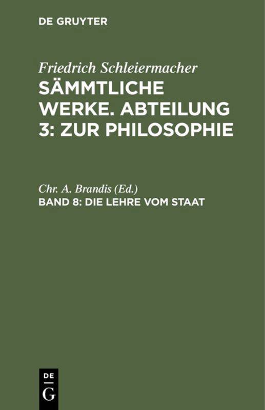 Simultaneously publ. as: Friedrich Schleiermacher's literarischer Nachlaß Zur Philosophie, Band 6