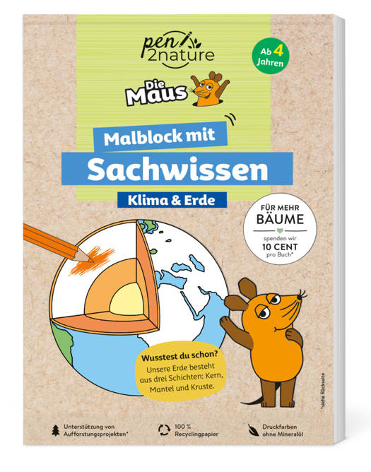 Alle Bücher und Blöcke wurden mit Farben auf Pflanzenöl-Basis und auf 100 % Recyclingpapier gedruckt. Der Verlag pen2nature unterstützt Klimaschutzprojekte und spendet 10 Cent pro Produkt für die Pflanzung neuer Bäume in heimischen Wäldern.