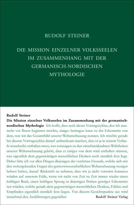 Im Juni 1910 war Rudolf Steiner einer Einladung der Skandinavischen Sektion der Theosophischen Gesellschaft gefolgt, um einen Vortragszyklus über "Die Mission einzelner Volksseelen im Zusammenhang mit der germanisch-nordischen Mythologie " zu halten. Vortragsort war das Nobel-Institut in Kristiania (Oslo). Der Text der Vorträge ist 1911 "nach einer vom Vortragenden nicht durchgesehenen Nachschrift" als Manuskriptdruck Band XIII in der Reihe der Vortragszyklen erschienen. Um die Jahreswende 1917/1918 hat Rudolf Steiner die erste Auflage eingehend durchgesehen und zahlreiche Korrekturen und Ergänzungen vorgenommen sowie eine Vorrede verfasst. Diese durchgesehene Ausgabe erschien ebenfalls als Manuskriptdruck 1922. Der Wortlaut dieser zweiten Auflage liegt dem Text der nun neu erscheinenden, überarbeiteten und erweiterten Auflage innerhalb der Gesamtausgabe zugrunde. Alle eigenhändigen Korrekturen Steiners werden nach dem im Rudolf Steiner Archiv erhaltenen Manuskriptexemplar in einem Stellenverzeichnis nachgewiesen. Zusätzliche Korrekturen, die in der gedruckten Ausgabe, aber nicht von Steiners Hand im Manuskriptexemplar vorhanden sind, werden ebenfalls im Stellenverzeichnis ausgewiesen. Damit dokumentiert diese Ausgabe erstmals die von Rudolf Steiner selbst vorgenommene Redaktion einer Publikation seiner eigenen Vorträge. Solche Redaktionen hat Steiner nur äußerst selten vornehmen können, weshalb der Dokumentation im vorliegenden Band ein besonderer Stellenwert zukommt.
