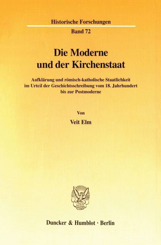 Der Autor verfolgt das Verhältnis der modernen Geschichtswissenschaft zu einer vormodernen Lebensform wie der der Religion von den Anfängen moderner Geschichtstheorie in der Aufklärung bis zur Postmoderne. Am Beispiel der Einschätzung der Zukunftsfähigkeit des Kirchenstaates im Zeitalter der Aufklärung soll verdeutlicht werden, wie das Konzept der Modernisierung, die im 18. Jahrhundert als Überwindung konfessioneller Staatlichkeit gedacht wurde, angesichts der Beharrungskraft von Papsttum und Katholizismus im Verlauf der letzten zweihundert Jahre revidiert wurde. Es zeigt sich, daß die moderne Geschichtswissenschaft ihre Haltung zur weltgeschichtlichen Rolle von Wissenschaft und Religion permanent revidiert hat. Im Anschluß an die postmoderne Kritik, die die moderne Wissenschaft als typisch neuzeitliches Machtinstrument versteht, werden die verschiedenen Deutungen des Gegensatzes von Papsttum und Aufklärung nach ihrem Verhältnis zu der politischen Auseinandersetzung um die Rolle von Wissenschaft und Religion in der Gesellschaft befragt. In Anlehnung an die postmodernen Kritiker, die die Erzählung vom wissenschaftlichen Fortschritt als neue Form des Mythos bezeichnen, werden die Geschichten von Papsttum und Aufklärung mit dem Instrumentarium der Erzählforschung untersucht.