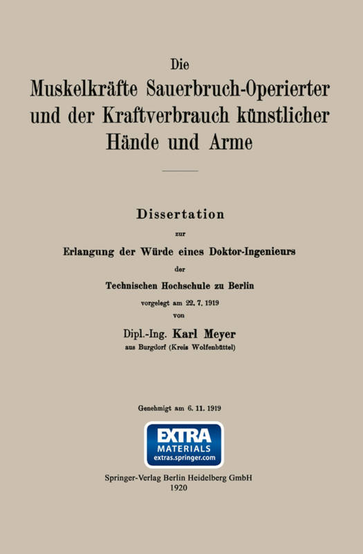 Die Muskelkräfte Sauerbruch-Operierter Und Der Kraftverbrauch Künstlicher Hände Und Arme