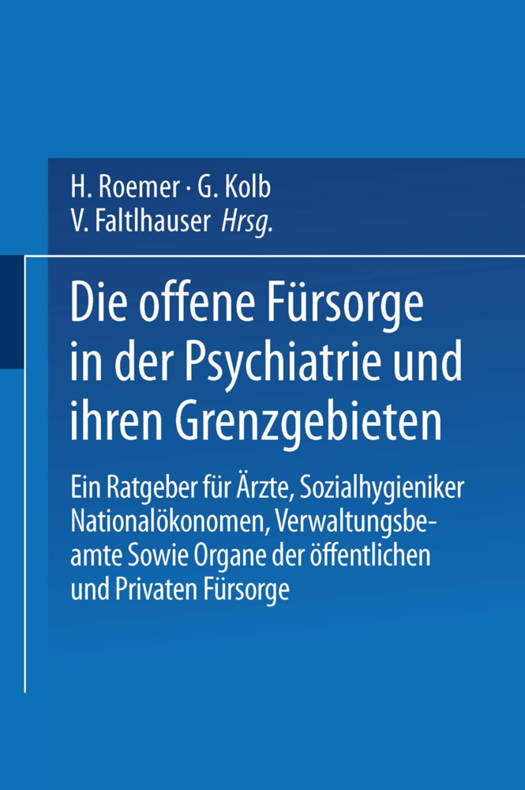 Die Offene Fürsorge in Der Psychiatrie Und Ihren Grenzgebieten