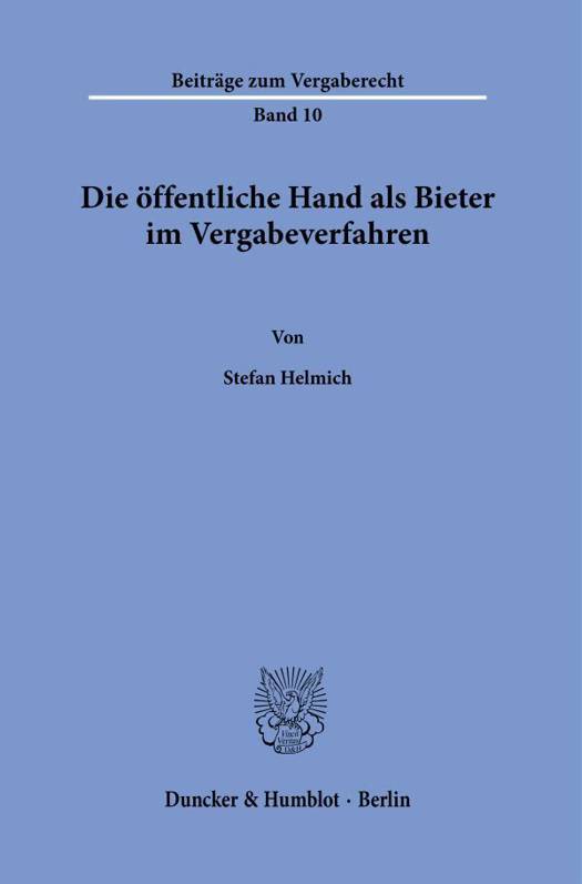 English summary: Public Authorities as Tenderers under EU Public Procurement Law Public authorities increasingly compete with private undertakings for public contracts. The thesis evaluates the extent to which the EU public procurement directives provide means to prevent distortions of competition. It focuses on the analysis which competitive advantages constitute state aid and on the legal options of considering that a tender has been affected by state aid. In addition, it examines conflicts of interest arising from close links between contracting authorities and tenderers. German description: Die offentliche Hand nimmt zunehmend als Bieter an Vergabeverfahren teil. Dies birgt das Risiko, dass sie staatliche Wettbewerbsvorteile einsetzt, um private Unternehmen zu unterbieten. Die Arbeit untersucht, welche Mittel die EU-Vergaberichtlinien bereitstellen, um etwaige Wettbewerbsverzerrungen zu neutralisieren. Dies umfasst die Analyse, ob Marktzutrittsverbote im Vergabeverfahren zu prufen sind, welche Vorteile, z.B. der Abschluss von ausschreibungsfreien Inhouse-Geschaften, als staatliche Beihilfen einzustufen sind und inwiefern zu berucksichtigen ist, dass Bieter staatliche Beihilfen erhalten haben. Besonders betrachtet wird das Verfahren zur Uberprufung ungewohnlich niedriger Angebote. Ebenfalls erortert werden Interessenkonflikte infolge von Nahebeziehungen zwischen offentlichen Auftraggebern und Bietern, die sich aus der Doppelfunktion einer naturlichen Person auf beiden Seiten ergeben konnen, aber auch aus strukturellen, insbesondere gesellschaftsrechtlichen Verbindungen.