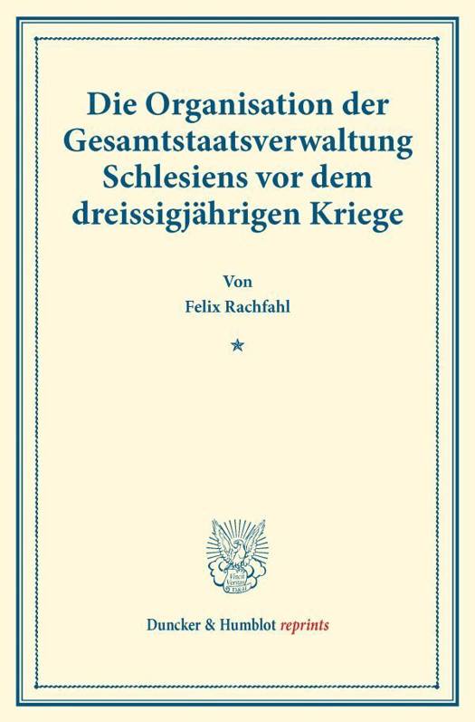 Die Organisation Der Gesamtstaatsverwaltung Schlesiens VOR Dem Dreissigjahrigen Kriege