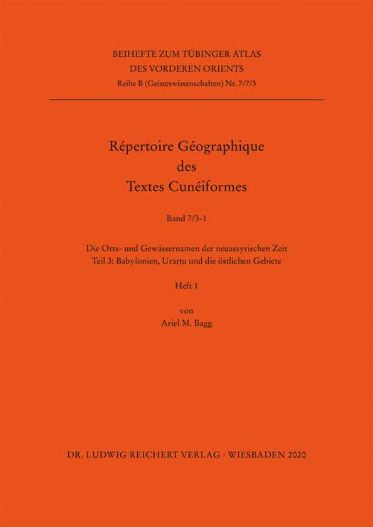 The third and final part of the Neo-Assyrian toponyms in the series Repertoire Geographique des Textes Cuneiformes. RGTC 7/3 is a two-volume set which comprises approx. 1400 toponyms and further 500 fragmentary place names from Babylonia, Urartu, and the eastern regions of the Assyrian Empire, as well as corrections and additions to the previous parts RGTC 7/1 (2007) and 7/2 (2017). The corpus of Neo-Assyrian toponyms comprises thus more than 3500 items treated in three parts and five volumes.