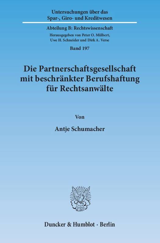 Anwaltlichen Zusammenschlüssen steht seit 2013 die Möglichkeit offen, sich als Partnerschaftsgesellschaft mit beschränkter Berufshaftung (PartG mbB) zu organisieren. Die Frage, welche Folgen die Wahl der neuen Organisationsform für das Risikomanagement einer Sozietät und den Schutz ihrer Vertragspartner hat, war bislang nicht geklärt. Vor diesem Hintergrund analysiert die Autorin typologisch, welche rechtsanwaltlichen Handlungen unter den Begriff des "anwaltlichen Berufsfehlers" fallen und welche Haftungsgrundlagen von dem Haftungsausschluss erfasst sind. Des Weiteren werden die Anforderungen sowie Risiken, die bei Neugründungen und Umwandlungen im Rahmen der PartG mbB bestehen, aufgezeigt. Neben diesen gesellschaftsrechtlichen Fragestellungen umfasst die Untersuchung die Erörterung der Eigenschaften und Anforderungen der neuen Form der Berufshaftpflichtversicherung nebst Auswirkungen versicherungsrechtlicher Mängel auf den drittschützenden Deckungsanspruch bzw. den Haftungsausschluss der Gesellschafter. Dabei behandelt Antje Schumacher auch die Spezialthemen einer möglichen Innenhaftung der Partner sowie die Gefahr der Anfechtung des Versicherungsvertrags aus Parallelwertungen zur D&O-Assekuranz.