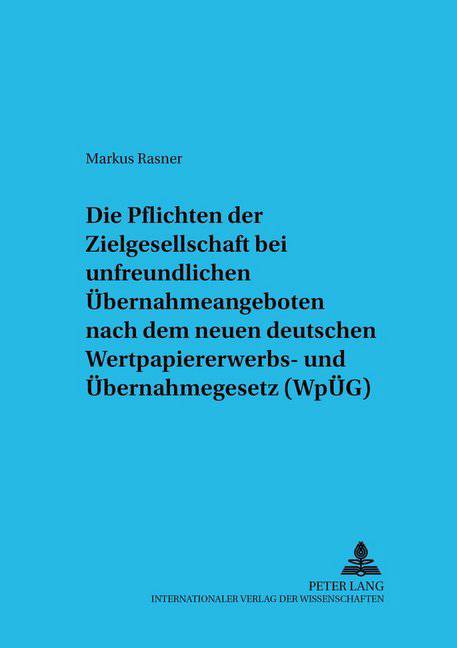 Die Pflichten Der Zielgesellschaft Bei Unfreundlichen Uebernahmeangeboten Nach Dem Neuen Deutschen Wpueg