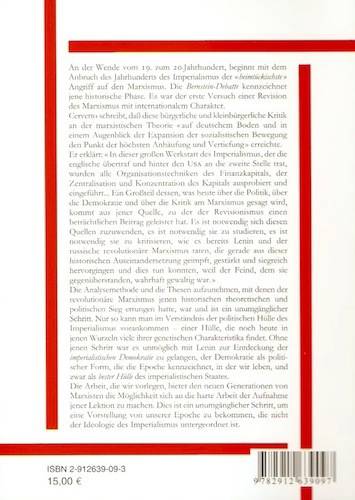 An der Wende vom 19. zum 20. Jahrhundert, beginnt mit dem Anbruch des Jahrhunderts des Imperialismus der «heimtückischste» Angriff auf den Marxismus. Die Bernstein-Debatte kennzeichnet jene historische Phase. Es war der erste Versuch einer Revision des Marxismus mit internationalem Charakter. Cervetto schreibt, daß diese bürgerliche und kleinbürgerliche Kritik an der marxistischen Theorie «auf deutschem Boden und in einem Augenblick der Expansion der sozialistischen Bewegung den Punkt der höchsten Anhäufung und Vertiefung» erreichte. Er erklärt: «In dieser großen Werkstatt des Imperialismus, der die englische übertraf und hinter den USA an die zweite Stelle trat, wurden alle Organisationstechniken des Finanzkapitals, der Zentralisation und Konzentration des Kapitals ausprobiert und eingeführt… Ein Großteil dessen, was heute über die Politik, über die Demokratie und über die Kritik am Marxismus gesagt wird, kommt aus jener Quelle, zu der der Revisionismus einen beträchtlichen Beitrag geleistet hat. Es ist notwendig sich diesen Quellen zuzuwenden, es ist notwendig sie zu studieren, es ist notwendig sie zu kritisieren, wie es bereits Lenin und der russische revolutionäre Marxismus taten, die gerade aus dieser historischen Auseinandersetzung geimpft, gestärkt und siegreich hervorgingen und dies tun konnten, weil der Feind, dem sie gegenüberstanden, wahrhaft gewaltig war.» Die Analysemethode und die Thesen aufzunehmen, mit denen der revolutionäre Marxismus jenen historischen theoretischen und politischen Sieg errungen hatte, war und ist ein unumgänglicher Schritt. Nur so kann man im Verständnis der politischen Hülle des Imperialismus vorankommen – einer Hülle, die noch heute in jenen Wurzeln viele ihrer genetischen Charakteristika findet. Ohne jenen Schritt war es unmöglich mit Lenin zur Entdeckung der imperialistischen Demokratie zu gelangen, der Demokratie als politischer Form, die die Epoche kennzeichnet, in der wir leben, und zwar als bester Hülle des imperialistischen Staates. Die Arbeit, die wir vorlegen, bietet den neuen Generationen von Marxisten die Möglichkeit sich an die harte Arbeit der Aufnahme jener Lektion zu machen. Dies ist ein unumgänglicher Schritt, um eine Vorstellung von unserer Epoche zu bekommen, die nicht der Ideologie des Imperialismus untergeordnet ist.
