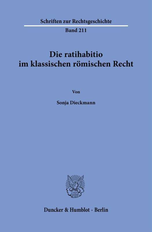 English summary: The ratihabitio in Classical Roman Law The present study sheds a light on select dogmatic questions concerning the ratihabitio in Classical Roman Law. Although the ratihabitio boasts a long tradition in jurisprudence, there has been a lack of a recent German-language study. It turns out that the legal figure of the ratihabitio is close, yet alien, to the legal institution of ratification under 184 (1) of the Burgerliches Gesetzbuch (the German Civil Code). German description: Obgleich die Beschaftigung mit der ratihabitio, der Genehmigung, auf eine lange Tradition in der Rechtswissenschaft zuruckblickt, fehlte es bislang an einer neueren deutschsprachigen Untersuchung. Die vorliegende Schrift beleuchtet anhand von Quellenuntersuchungen ausgewahlte dogmatische Fragen zur ratihabitio im klassischen romischen Recht und zeichnet dabei den Gedankengang der klassischen Juristen von einem tatsachlichen Billigen bis hin zu einer rechtlichen Anerkennung einer fremden Handlung nach. Es zeigt sich, dass die Rechtsfigur der ratihabitio dem Rechtsinstitut der Genehmigung nach 184 Abs. 1 BGB nahesteht und ihr doch fremd ist. Von Bedeutung ist die ratihabitio vor allem bei Verfugungen Nichtberechtigter. Im Gegensatz zum geltenden Recht kann im romischen Recht auch etwa die Zahlung an einen Geschaftsfuhrer auf eine nicht bestehende Forderung genehmigt werden. Die Arbeit wurde ausgezeichnet mit dem Preis Hans Ankum der Stiftung Stichting Rechtshistorisch Fonds Mr Joseph Winkel.