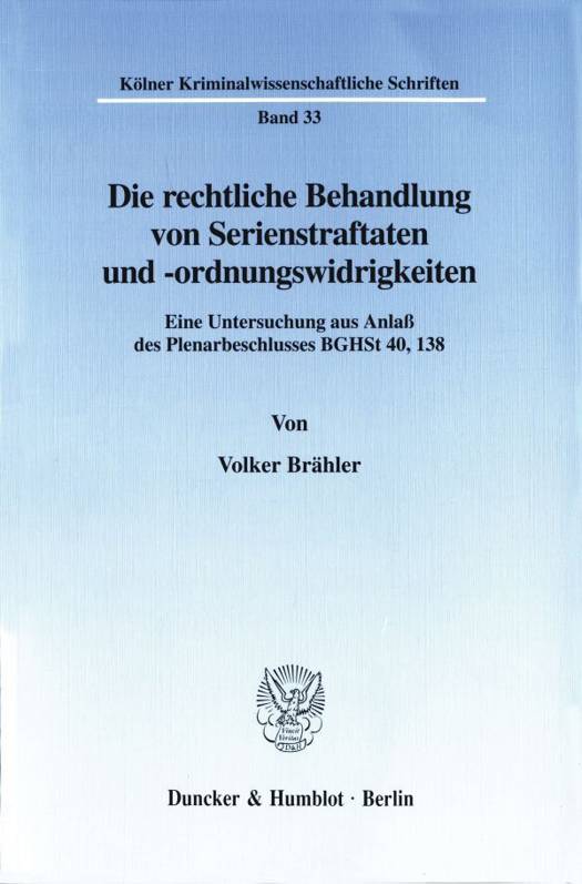 Die Rechtliche Behandlung Von Serienstraftaten Und -Ordnungswidrigkeiten