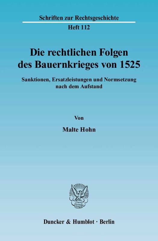 Der Bauernkrieg ist in der Literatur breit behandelt worden. Es fehlte bislang aber eine Arbeit, die sich umfassend mit den rechtlichen Konsequenzen des Aufstandes befaßt. Diese Lücke schließt der Autor unter Auswertung gedruckter und ungedruckter Quellen.Im ersten Teil der Arbeit werden die verhängten Strafen unter Einordnung in die zeitgenössisch üblichen Sanktionen dargestellt. Ferner werden die Unterscheidungen in Tätergruppen und die Strafzwecke problematisiert. Die Strafverfahren werden typologisiert und ihre unterschiedlichen rechtlichen Grundlagen dargestellt. Der politischen Bedeutung des Schwäbischen Bundes in Süddeutschland ist die Darstellung seiner Rolle bei der Bestrafung geschuldet. Schließlich versucht ein Exkurs über die Urfehden in Württemberg quantifizierbare Aussagen über die Art der Bestrafung zu treffen.Im zweiten Teil werden die finanziellen Auswirkungen des Aufstandes beleuchtet. Neben den als Ersatz für die Feldzugkosten zu leistenden Brandschatzungsgeldern stehen hier durch die Bevölkerung erbrachte Schadenersatzleistungen im Vordergrund, wobei die Dominanz von Umlageregelungen gegenüber Klageverfahren einzelner Geschädigter deutlich wird. Im darauf folgenden Teil werden unterschiedliche Formen konfliktbeendender Regelungen dargestellt, nämlich Waffenstillstände, Huldigungen, der Sonderfall des Weingartener Vertrages und waffenrechtliche Regelungen.Im vierten Teil wird die Rolle der reichsweit tätigen Gerichte und des Reichsregiments vor allem bei der Frage des Schadenersatzes erörtert. Den Abschluß bildet die Behandlung des Aufstandes auf den Reichstagen, der durch den Bauernkrieg initiierten Reichs- und Landesgesetzgebung sowie eine Darstellung der sich mit den Folgen des Bauernkrieges befassenden zeitgenössischen Literatur.