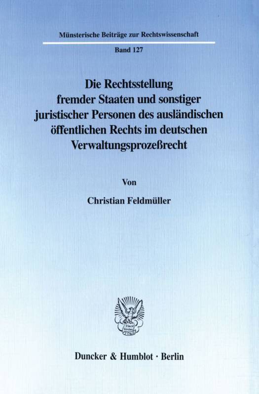 Wesentliche Erkenntnisse des Autors sind, daß weder Geltendmachung ausländischer noch inländischer öffentlich-rechtlicher Ansprüche fremder Staaten im Inland völkerrechtliche Bedenken entgegenstehen, daß die internationale Zuständigkeit deutscher Gerichte bei der Geltendmachung ausländischer öffentlich-rechtlicher Ansprüche von dem Vorliegen eines innerstaatlichen Rechtsanwendungsbefehls abhängt und daß auch fremde Staaten in Abhängigkeit von der jeweiligen Rechtsquelle und der verwaltungsprozessualen Schutznormtheorie vor deutschen Verwaltungsgerichten klagebefugt sind. Erörtert werden in letzterem Zusammenhang insbesondere Fragen des grenzüberschreitenden Schutzes deutschen Verwaltungsrechts, der interkommunalen Zusammenarbeit, der Anwendung ausländischen öffentlichen Rechts und der Klagebefugnis aufgrund Europäischen Gemeinschaftsrechts.
