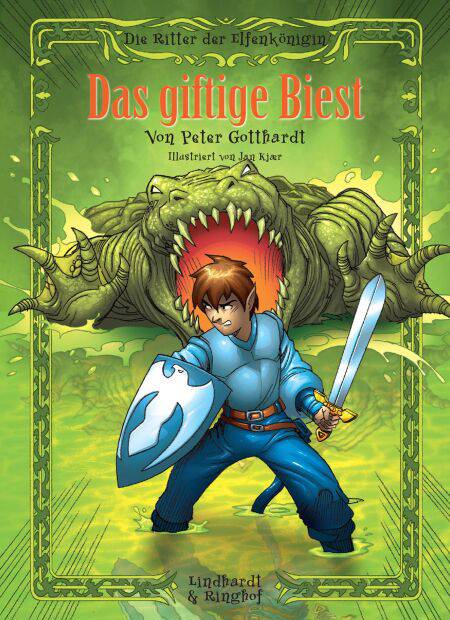 Weit hinter dunklen Bergen und dichten Wäldern liegt das Reich der Elfen. Hier regiert die Elfenkönigin Veronika. Mitten auf einer der grünen Wiesen ragt ein mächtiger Felsen empor. Dort liegt das Schloss der Königin.Die Königin ist für alle da, die ein Anliegen haben. Wenn jemand Unrecht erfahren hat, versucht sie es wieder gut zu machen. Wenn jemand in Not ist, wird ihm geholfen. Wenn ein Ungeheuer irgendwo im Königreich gesehen wurde, dann sendet sie sogleich einen ihrer Ritter, um die Gefahr aufzuhalten.Das Königreich wird von den Rittern bewacht, denn den Elfen drohen viele Gefahren. Außerhalb des Landes liegt das Reich der Schatten und dort treiben dunkle Kräfte ihr Unwesen.DAS GIFTIGE UNGEHEUERViele Gefahren drohen den Elfen in ihrem grünen Reich. Deshalb steht eine Schar von tapferen Rittern und halten Wache um den Thron der Königin...Eine furchterregende Echse greift die Elfen an. Ritter Juglans jagt dem Biest alleine nach um sein Mut zu beweisen. Doch kann er das Ungeheuer ohne Hilfe erlegen?Dies ist der vierte von insgesamt acht Bänden der Serie "Die Ritter der Elfenkönigin". Das Buch kann aber auch unabhängig von den ersten Bänden gelesen werden.ANWENDUNG, ZIELGRUPPE, NIVEAUDieses Buch ist geeignet für Mädchen und Jungen im Alter von ungefähr 9 Jahren, die schon ein wenig Erfahrung mit dem Lesen haben und interessiert an einer Kombination aus Spannung, Abenteuer, Fantasy und Liebe sind. Die Geschichte eignet sich daher als Lesetraining und zum Vorlesen, sowohl in der Schule als auch zu Hause.In der Gestaltung der Texte wurden vorzugsweise leicht wiedererkennbare Wörter sowie eine große, klare Schriftart verwendet. Außerdem sind die Bücher mit vielen Illustrationen ausgeschmückt, die Lesen erleichtern sollen. Die Bücher wenden sich an Leser der 3. bis 4. Klassenstufe.DER AUTORPeter Gotthardt wurde 1946 in der Nähe von Kopenhagen geboren. Als Kind war er eine wahre Leseratte, die alles an Büchern verschlungen hat – Romane, Abenteuer, Geschichtsbücher, Naturwissenschaft, einfach alles, und die kleine Kinderabteilung der Bibliothek wurde der Ursprung seiner lebenslangen Liebe zu Büchern. Mittlerweile hat Peter selbst mehr als 60 Kinderbücher geschrieben. Er schreibt, weil er seine Ideen zu den Geschichten selbst so spannend findet, dass er unbedingt wissen muss, wie diese Geschichten enden – und so müssen die Geschichten stets von ihm selbst fertig gedichtet werden. Die Bücherreihe Die Ritter der Elfenkönigin beruht auf Geschichten aus alten Ritterromanen, wo Liebe und Gefecht sich in abenteuerlichen Umgebungen ausspielen. In jedem Buch muss ein ausgewählter Ritter sich außerordentlichen Gefahren stellen, um das schöne Land der Elfen zu retten, denn sie sind es ja, die die Pflanzen zum Wachsen bringen. Peter hat die Buchserie so konzipiert, dass die neuen Leser erleben, dass Lesen reine Spannung und das beste, kluge Vergnügen der Welt ist.-