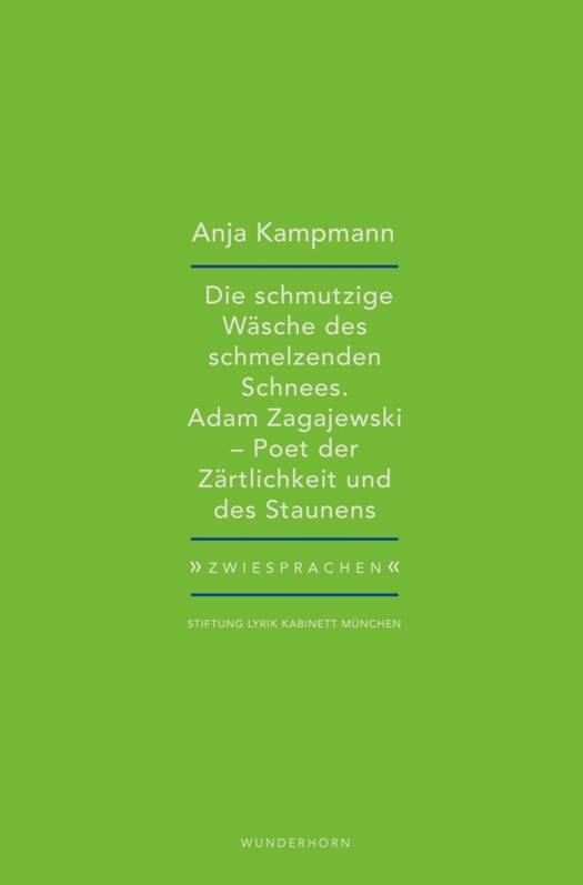 "Die Gedichte Adam Zagajewskis sind beweglich wie Türangeln. Aus dem Alltäglichen heraus eröffnen sie neue Räume, die unsere Ängste und Hoffnungen wie in einer anderen Dimension spiegeln. Immer kann da mehr sein: Es sind Möglichkeitsräume, Räume voller Sinnlichkeit, Mystik, Geschichte. Erfasst werden sie durch einen zärtlichen Blick auf das, was wir nicht sehen wollen oder können, im Vorbeigehen eröffnet, als hätte die Oberfläche der Welt mit einem Mal einen kleinen Riss, durch den Licht eindringt. Halten wir inne. Bleiben wir mit Adam Zagajewski noch einen Moment in diesem flüchtigen Glanz. Betrachten wir 'die schmutzige Wäsche des schmelzenden Schnees'. Wir halten inne. Etwas, was übersehen war, scheint auf." (Anja Kampmann)