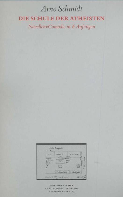 Die Schule der Atheisten, erschienen 1972, ist Arno Schmidts letzter utopischer Roman. Wir befinden uns in Tellingstedt, einem Kaff im norddeutschen Dithmarschen, und schreiben das Jahr 2014. Die Erde ist nach einer atomaren Auseinandersetzung zwischen China und den USA weitgehend zerstört; in dem von den USA abhängigen Reservat lebt William T. Kolderup zusammen mit seiner Enkelin Suse. Der Friedensrichter und Senator Kolderup erwartet den Besuch der amerikanischen Außenministerin Nicole Kennan, genannt Isis, die in Tellingstedt mitsamt ihrem Gefolge auf neutralem Grund den diplomatischen Vertreter Chinas treffen möchte. Auf einer Schiffspassage, die man unternimmt, um die schwierigen Verhandlungen zu retten, erzählt Kolderup eine Geschichte aus dem Jahr 1969. Damals waren er und ein paar Freunde ebenfalls per Schiff unterwegs auf einer Vortragsreise »zur Propagierung des Atheismus«. »Ein solches Werk wird nur alle hundert Jahre vollbracht«, jubelten Klaus Podak und Rolf Vollmann bei Erscheinen. »Gut. Frei. Leicht. Schön. Spaßig: ja. Die Atheistenschule ist ein göttliches Buch.«