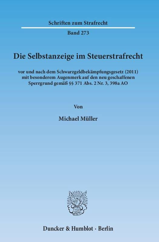Das Rechtsinstitut der Selbstanzeige im Steuerstrafrecht hat im Jahr 2011 weitreichende Änderungen und Verschärfungen durch das Schwarzgeldbekämpfungsgesetz erfahren. Der Autor beschreibt die Entwicklung der Selbstanzeige ausgehend von der Rechtslage vor dem Schwarzgeldbekämpfungsgesetz über die Entscheidung des BGH aus dem Jahr 2010 zur Teilselbstanzeige bis hin zu den durch den Gesetzgeber im Jahr 2011 vorgenommenen Änderungen. Mit diesen setzt sich die Arbeit kritisch auseinander. Zahlreiche Schwierigkeiten in der Anwendung des neuen Gesetzes, insbesondere die undolose Teilselbstanzeige betreffend, geringfügige Unvollständigkeiten der Selbstanzeige, den Umfang der Sperrwirkung der in Paragraph 371 Abs. 2 AO genannten Sperrgründe sowie die Anwendung des neu geschaffenen Sperrgrundes gemäß Paragraphen 371 Abs. 2 Nr. 3, 398a AO auf den Teilnehmer, werden durch den Autor näher beleuchtet, die zu diesen Problemkreisen bestehende juristische Diskussion aufgearbeitet und die sich ergebenden Fragen jeweils einer Lösung zugeführt.