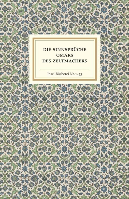 Die Sammlung der humorvollen, funkelnden, aber auch eigenartigen und nachdenklichen Sinnsprüche aus dem 11. Jahrhundert erlangte schon früh große Berühmtheit und gehört längst zur Weltliteratur. Es handelt sich dabei um vierzeilige Gedichte (ruba'i = vierzeiliges Gedicht) des altpersischen Wissenschaftlers und Dichters Omar-i-Khajjam. Die Sammlung heißt in anderen Ländern schlicht »Rubaiyat« und ist ein Klassiker der orientalischen Literatur, der nun in der Insel-Bücherei neu gesetzt und mit ornamentalem Buchschmuck versehen angeboten wird.