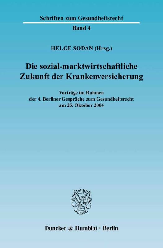 Im Rahmen der 4. Berliner Gespräche zum Gesundheitsrecht diskutierten hochrangige Experten die Frage, inwieweit das Erfolgsmodell der sozialen Marktwirtschaft Grundlage einer künftigen Reform der Krankenversicherung in Deutschland sein kann. Von wesentlicher Bedeutung ist dabei vor allem das Verhältnis zwischen gesetzlicher und privater Krankenversicherung. Varianten einer "Bürgerversicherung" wurden im Rahmen der Tagung eingehender verfassungsrechtlicher Kritik unterzogen. Eine ausführliche Erörterung erfolgte insbesondere auch im Hinblick auf das von den Unionsparteien vorgeschlagene Modell solidarischer Gesundheitsprämien. Diskutiert wurden ferner die Beziehungen der gesetzlichen Krankenkassen zu den Leistungserbringern wie pharmazeutischen Unternehmen sowie Ärzten und Zahnärzten. Insofern spielte auch der zunehmende Einfluss des europäischen Wettbewerbs- und Vergaberechts auf das nationale Krankenversicherungsrecht eine wichtige Rolle.