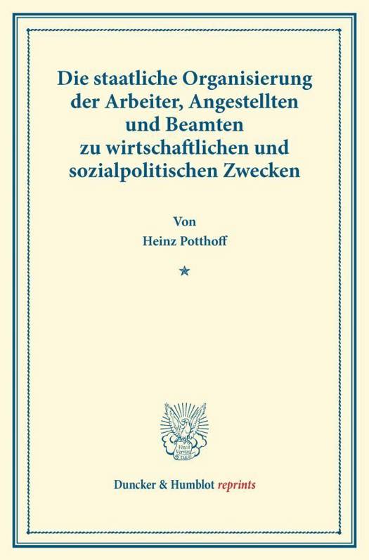 Die Staatliche Organisierung Der Arbeiter, Angestellten Und Beamten Zu Wirtschaftlichen Und Sozialpolitischen Zwecken