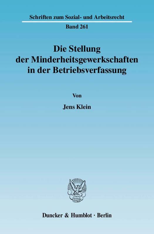 Die betriebsverfassungsrechtliche Praxis ist erstaunlich oft von der heftigen Konkurrenz zwischen Mehrheits- und Minderheitsgewerkschaften und deren Vertretern gekennzeichnet. Nach einem Blick auf die Entwicklung der Minderheitsgewerkschaften widmet sich Jens Klein dem verfassungsrechtlichen Rahmen für die Tätigkeit der Minderheitsgewerkschaften in der Betriebsverfassung und verwirft dann die These der Rechtsprechung vom "einheitlichen Gewerkschaftsbegriff" im gesamten Arbeitsrecht.