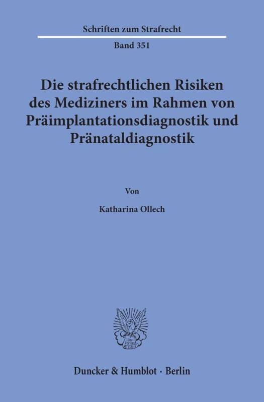 Die Methoden der Praimplantations- und Pranataldiagnostik erfahren immer groaere Beliebtheit. Es konnen mit diversen Untersuchungen vor der Einpflanzung eines Embryos oder im Rahmen einer Schwangerschaft Krankheiten diagnostiziert werden. Doch gerade der medizinische Fortschritt offnet Missbrauch Tur und Tor. Es ist unabdingbar, dass die rechtlichen Voraussetzungen dieser Verfahren normiert und Verstoae strafrechtlich sanktioniert sind. Der deutsche Gesetzgeber hat die Aufgabe, ein ethisch sensibles Gebiet strafrechtlich zu regeln, aber auch Rechtssicherheit fur die Arzte zu gewahrleisten, die die Untersuchungen durchfuhren. Im Mittelpunkt dieser Arbeit stehen die strafrechtlichen Risiken der Arzte. Es wird untersucht, ob der Mediziner de lege lata unzumutbaren Strafbarkeitsrisiken ausgesetzt ist, oder ob die Risiken dem durchschnittlichen Berufsrisiko von Arzten entsprechen. Letztendlich musste ein verantwortungsvoller Arzt in Zweifelsfallen eine Untersuchung unterlassen, wenn er dem Wortlaut der Rechtsnorm nicht entnehmen kann, ob diese rechtmaaig ist. In der Arbeit wird festgestellt, dass tatsachlich unangemessene Strafbarkeitsrisiken vor allem bei den Regelungen zur Praimplantationsdiagnostik bestehen und auch praktische Relevanz haben.