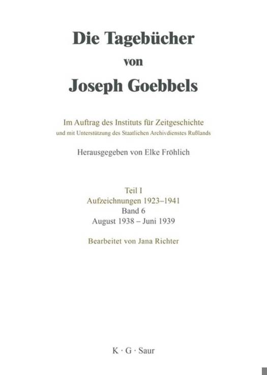 Die Tagebücher von Joseph Goebbels, Band 6, August 1938 - Juni 1939