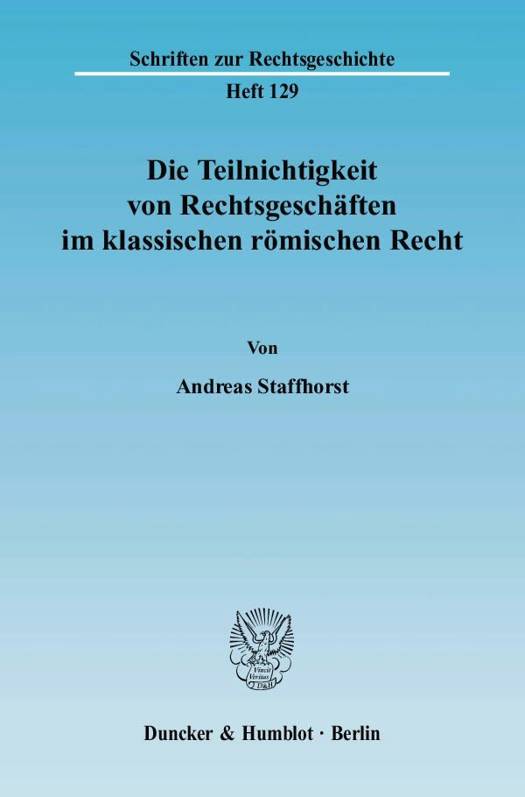 Die römischen Juristen haben keine abstrakte Begrifflichkeit von der Teilnichtigkeit der Rechtsgeschäfte entwickelt, und doch gab es diese Figur im römischen Privatrecht überaus häufig. Zahlreiche Quellen sind uns überliefert, viele von ihnen sind in dieser Monographie erstmals in den Zusammenhang mit dem Thema gestellt. Während das Bild im Vertragsrecht so bunt ist wie die Vielfalt der Verträge und Parteiinteressen, lassen sich die Wurzeln der Teilnichtigkeit im Erbrecht historisch-dogmatisch bis weit in die archaische Zeit zurückverfolgen. Prozessuale Hindernisse für die Durchsetzung teilnichtiger Geschäfte kannte das römische Recht nicht.