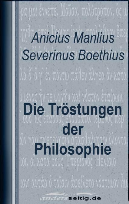 Das Hauptwerk des Boethius ist die Consolatio philosophiae ("Trost der Philosophie") in fünf Büchern. Außer diesem Titel kommt auch die Form De consolatione philosophiae ("Über den Trost der Philosophie") in den Handschriften vor. Das Werk entstand nach Boethius' Verhaftung. Mit der Gestaltung als Prosimetrum (Prosa mit eingefügten Gedichten) greift Boethius eine in der Spätantike beliebte Form auf. Er verwendet 28 verschiedene Versmaße. Die Consolatio philosophiae besteht aus 39 Prosatexten und 39 Gedichten, die abwechselnd aufeinander folgen. Das dargelegte philosophische Gedankengut stammt vor allem aus den Werken Platons, des Aristoteles und der Neuplatoniker, aber auch stoische Vorstellungen sind eingeflossen. Auf die Lehren Platons wird immer wieder zustimmend Bezug genommen. Das Werk reiht sich in die Tradition der antiken Trostliteratur ein und ist zugleich ein Protreptikos (eine zur Philosophie ermunternde Schrift). Dargestellt wird der Heilungsprozess des in seiner Not seelisch erkrankten Gefangenen. Das Werk zerfällt in zwei Hälften, wobei das berühmte, ungefähr in die Mitte gestellte neunte Gedicht des dritten Buches (Anfang: O qui perpetua) den Übergang und Wendepunkt bildet. Im ersten, negativen Teil wird dem Leser die Nichtigkeit der irdischen Güter und die Sinnlosigkeit des Strebens nach ihnen vor Augen gestellt. Im zweiten, positiven Teil richtet sich das Augenmerk auf die Alternative zu diesen vergeblichen Bemühungen: die zum Erfolg führende Suche nach dem einzig wahren Gut, dem Guten schlechthin. Ob der abrupt wirkende Schluss stimmig und das Werk somit als abgeschlossen zu betrachten ist, ist in der Forschung umstritten. Unklar ist auch, ob die Schrift schon vor dem Abschluss des Gerichtsverfahrens oder erst nach der Verhängung des Todesurteils entstanden ist und ob Boethius sich im Kerker oder in einem relativ komfortablen Hausarrest mit Bibliothekszugang befand.