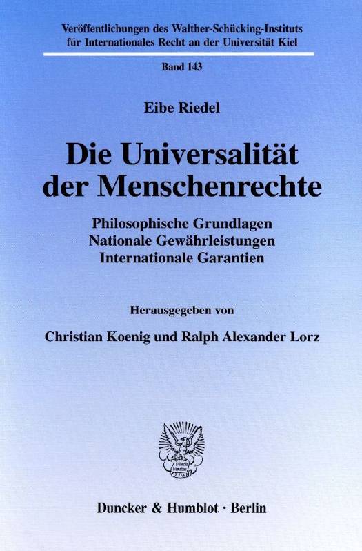 All diesen Tendenzen zum Trotz weiterhin die Idee von der Universalität der Menschenrechte zu vertreten, hat sich unter diesen Umständen als ebenso schwierig wie erforderlich erwiesen. Eibe Riedel hat sich dieser Aufgabe immer mit unermüdlichem Eifer angenommen und dabei praktisches Engagement - zuletzt als Mitglied im UN-Ausschuß für wirtschaftliche, soziale und kulturelle Rechte - und theoretische Durchdringung in beeindruckender Weise zur Deckung gebracht. Die vorliegende Auswahl von Beiträgen aus seiner Feder, die seine Schüler aus Anlaß seines 60. Geburtstages zusammengestellt haben, dokumentiert das auf überzeugende Art. Ihre Inhalte, die sämtlich um die Aufrechterhaltung und Durchsetzung des universalen Geltungsanspruchs der Menschenrechte kreisen, haben bis heute nichts von ihrer Aktualität verloren.