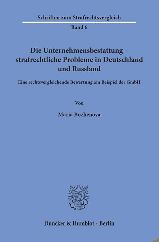 Die sich in den letzten Jahren etablierende Praxis professioneller Unternehmensbestattung erfreut sich in Deutschland und Russland vermehrt großer Beliebtheit. Während Gesellschafter, die beabsichtigen, die notleidende Gesellschaft still abzuwickeln, und Bestatter von dieser Vorgehensweise profitieren, sind betroffene Gläubiger erheblichen Schäden ausgesetzt. Die bestehenden Regelungen zur Bekämpfung der »alternativen Liquidation« gewähren ihnen noch keinen ausreichenden Schutz.Um diese Willkür in beiden Staaten zu überführen, bezweifelt die Arbeit zunächst die Rechtmäßigkeit der ergriffenen Maßnahmen, die ohnehin einigen Tatbeständen unterfallen. Im Ausgangspunkt untersucht die Autorin die Normen des russischen und deutschen Strafrechts bezugnehmend auf die Auseinandersetzung mit dem Unrecht, überprüft die Verantwortung aller Beteiligten und erarbeitet durch die rechtsvergleichende Methode mögliche Lösungswege für beide Gesetzgebungen.